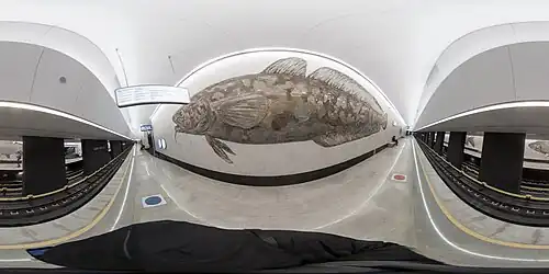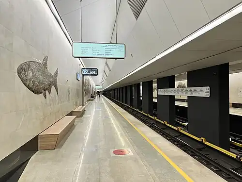 The station is notable for its mosaics of fish that can be found in the nearby Moscow River. The mosaics draw inspiration from a 1st Century Roman mosaic depicting a fish now on exhibit at the State Historical Museum, Moscow.[2]