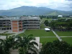 The Naguanagua (Spanish pronunciation: [naɣwaˈnaɣwa]) municipality is one of the 14 municipalities (municipios) that makes up the Venezuelan state of Carabobo and, according to the 2011 census by the National Institute of Statistics of Venezuela, the municipality has a population of 157,437.[1] The town of Naguanagua is the shire town of the Naguanagua Municipality.[2] It forms part of the greater Valencia Metropolitan Area in Venezuela. It is in the valley of the Cabriales River at the base of Cerro El Café and the El Trigal Mountain. Valencia and Naguanagua form a continuous urban area. The highway that runs from the centre of Valencia towards Puerto Cabello passes through this community; Bolivar Avenue in Valencia becomes University Avenue in Naguanagua on the northern side of a traffic roundabout, or redoma.