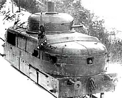 The most notable armored trains of the First World War were the armored rail-cruisers built by Russia and Austria-Hungary. These rail cars were self-propelled and fitted with turreted weapons, thus resembling railroad tanks. One such Austro-Hungarian rail-cruiser was built in 1916. Dubbed the Motorkanonwagen ("motorized gun car"), it was the most futuristic of the Austro-Hungarian armored rail-cruisers, armed with a fully-rotating turret fitted with a 70 mm Škoda gun. The Motorkanonwagen was destroyed by Romanian artillery fire during the Romanian offensive into Transylvania.[3][4] Four miles east of the Turnu Roșu Pass, the Romanian 1st Border Guard Regiment drove back a Hungarian battalion, taking two villages by dawn on the 28th. Thus, the Romanians had blocked the important railroad from Brassó (Brașov/Kronstadt) to Nagyszeben. The Austro-Hungarian commander at Nagyszeben, Colonel Arnold Barwick, sent the armored train that morning to see what had happened, but Cantacuzino's regiment set it ablaze, rendering it unserviceable and forcing the Austro-Hungarians to abandon it.[5]