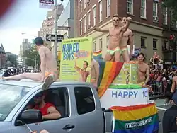 Naked Boys Singing! is a musical revue that features traditional American vaudeville-style music performed by eight actors who sing and dance naked. The campy musical comedy premiered at the Celebration Theatre in West Hollywood, California, on March 28, 1998.[1] The show opened off-Broadway in July 1999, and was subsequently transferred numerous times across New York City. A Las Vegas production at the Erotic Heritage Museum opened in September 2021.[2]