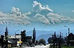 Nalchik (Russian: Нальчик, IPA: [ˈnalʲtɕɪk]; Kabardian: НалщӀэч, romanized: Nalṣ̂ăčʼ [naːɮɕʼakʲ]; Karachay-Balkar: Нальчик[13] or Налчыкъ[14][15], romanized: Nalçik or Nalçıq [naltʃɯk]) is the capital city of Kabardino-Balkaria, Russia, situated at an altitude of 550 meters (1,800 ft) in the foothills of the Caucasus Mountains; about 100 kilometers (62 mi) northwest of Beslan (Beslan is in the Republic of North Ossetia–Alania).[16] It covers an area of 131 square kilometers (51 sq mi). Population: 247,054 (2021 Census);[11] 240,203 (2010 Census);[17] 274,974 (2002 Census);[18] 234,547 (1989 Soviet census).[19]