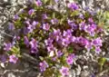 Purple mat, Nama demissum, grows in the American desert southwest, such as the Mojave Desert, and parts of Mexico on dry sandy or gravelly flats from 2000' to 5500' in creosote bush scrub.[1]