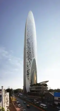Namaste Tower was a planned 310 m (1,017 ft) tall skyscraper mega project in Mumbai, India.[4] It would have been a mixed-use skyscraper of 63 floors housing a 380-room W Hotel, offices and retail space. It was designed by Atkins, Dubai.[5] The design resembles the Namaste gesture: two wings of the hotel are clasped together like hands greeting.