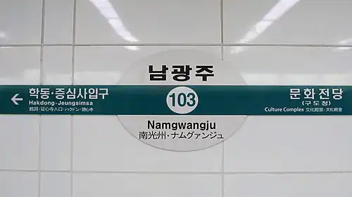 - ^ a b c Line 1: Namgwangju, Gwangju Metro, archived from the original on September 24, 2015, retrieved April 12, 2012