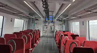 The train has a 2x2 seating arrangement with adequate legroom for the passengers. The aisles have grab handles and poles for standing passengers during the peak hours. Since it is built for regional rail service, it has an overhead luggage rack. When it comes to digital features the train has on-board Wi-Fi, a public announcement and display system, an infotainment display, a dynamic route map display and emergency communication facilities. For efficient consumption of energy, the trainsets include ambient lighting and temperature control systems. The train is also accessible with a dedicated wheelchair space. When it comes to safety, the train is equipped with a fire & smoke detector, CCTV, fire extinguisher and door status indicator along with innovative Train Control Monitoring System technology, and its predictive and condition-based monitoring features.[12]