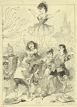 - ^ Reproduced in Gallica. accessed 9 July 2021. The full caption reads - Namouna, ballet archipelliculaire, par MM. Nuitter et Petipa, orchestration de M. Lalo. Les Pointes, par la diva SANGALLI; - Ballades, par mademoiselle SUBRA; - Parade, par mademoiselle Invernizzi: - Cassonade, par mademoiselle MERCEDES; - Estafilade, par mademoiselle BIOT; - Estocades, par M. MERANTE; - Gambades, par M. VASQUEZ; - Embuscade, par M. PLUQUE; - Promenade, par M. CORNET; - OEillades; par tout le corps de ballet.