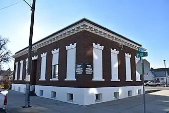 The Nampa and Meridian Irrigation District Office in Nampa, Idaho, is a 1-story brick and concrete building designed by Tourtellotte and Hummel and completed in 1919. The building features tall, narrow window fenestrations topped by large, vertical keystones with sidestones. Most of the windows have been replaced by a flat stucco surface painted brilliant white. The site was listed on the National Register of Historic Places in 1982.[2]