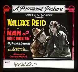 Nan of Music Mountain is a 1917 American silent drama film directed by George Melford and Cecil B. DeMille (who receives no screen credit).[1] The film is based on Frank H. Spearman's novel of the same name and stars Wallace Reid and Anna Little.[2]