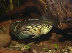 - ^ Römer, U. (2006). Cichliden-Atlas: Naturgeschichte der Zwergbuntbarsche Südamerikas. - Teil 2. Mergus, Verlag für Natur- und Heimtierkunde Baensch. ISBN 978-3-88244-084-3.