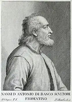 Giovanni di Antonio di Banco, called Nanni di Banco (c. 1374 – 1421), was an Italian Renaissance sculptor from Florence. He was a contemporary of Donatello – both are first recorded as sculptors in the accounts of the Florence Duomo in 1406, presumably as young masters.[1] He is one of the artists whose work manifested the transition from Gothic to Renaissance art in the city, finding inspiration in classical Roman sculpture and bringing a new naturalism to Florentine art.