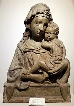 A number of smaller works before 1410 are attributed to him, especially some of a type of half-length Virgin and Child in relief or free-standing, of which many versions survive in various materials, and for which Lorenzo Ghiberti may have produced the prototypes, leading to them sometimes being called the "madonna ghibertiana", with Types A and B, depending on the pose of the Virgin's hands.[10]