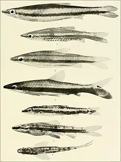 - ^ Christopher Scharpf (11 June 2025). "Family LEBIASINIDAE Gill 1889 (Pencilfishes)". The ETYFish Project Fish Name Etymology Database. Christopher Scharpf. Retrieved 7 August 2025.