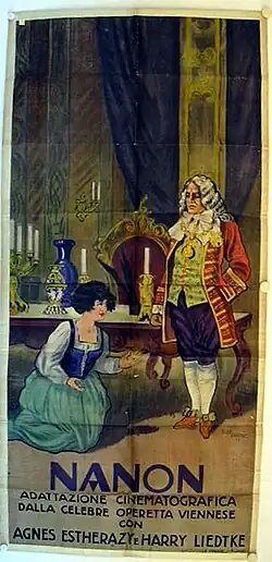 Nanon is a 1924 German silent historical film directed by Hanns Schwarz and starring Agnes Esterhazy, Harry Liedtke, and Hanni Weisse.[1] It is based on the operetta Nanon by Richard Genée with a libretto by F Zell. The film's sets were designed by the Hungarian art director Stefan Lhotka. The film was remade in 1938 as a sound film of the same name.