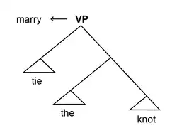 Phrasal lexicalisation is the concept that proposes that only lexical items can constitute terminal nodes.[12][13] When this principle is applied, we can say that in regular plural nouns, there is no special lexicalisation (denoted in the below example using X) that needs to apply, and so standard pluralisation rules apply. The following is an example using "duck" where because there is no additional lexicalisation of the plural noun, an -s is added to pluralise the noun: