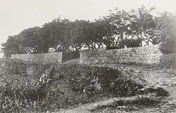 Nanzan Castle was built in the early 14th century, and became capital of Nanzan in 1314 when the Lord of Ōzato, Ōzato Ofusato, broke away from the chieftain Tamagusuku at Urasoe Castle.[1] It sat on a hill near the fishing town of Itoman and the farming village of Ōzato. There was a small inlet at the bottom of the hill that allowed merchant ships to trade directly with the castle.[2] The strategic location of the castle allowed Nanzan to compete with Chūzan and outlive Hokuzan, but during a succession dispute in 1429 following the death of the last King of Nanzan, Ōzato Taromai, the army of Chūzan captured the castle.[2] In the 1950s, a primary school was built within the inner court of the castle.[2]