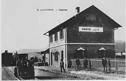 Opened in June 1894 in what was then the Ottoman Empire at the completion of the Société du Chemin de Fer ottoman Salonique-Monastir, a branchline of the Chemins de fer Orientaux from Thessaloniki to Bitola. During this period Northern Greece and the southern Balkans where still under Ottoman rule, and Naoussa was known as Agoustos.[4][5] Naoussa was annexed by Greece on 18 October 1912 during the First Balkan War. On 17 October 1925 The Greek government purchased the Greek sections of the former Salonica Monastir railway[6] and the railway became part of the Hellenic State Railways, with the remaining section north of Florina seeded to Yugoslavia. During this period, the station became an important entry point for supplies and materials[7]