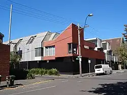 Completed in 2001, Napier Street Housing is a residential complex in Fitzroy, Victoria, designed by Kerstin Thompson Architects. The design was awarded the RAIA Residential Multiple Award in 2002. The project is a medium-density development which articulates many of Kerstin Thompson's architectural ideologies regarding ideas on the "interstitial" as a mode of thinking around architecture, and a preference for hybrid and complex solutions rather than single expressions. These ideologies resulted in two strong themes, a distinctive entanglement with the idea of context and a creative approach towards dwelling configurations.[1]