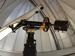 The Napoleon III Telescope is an historic 6-inch refracting telescope owned by the University of Notre Dame. The telescope was given to the university in 1867 by French Emperor Napoleon III[1] and is housed in an observatory on the top of the Nieuwland Hall of Science.[2][3] The objective lens of the telescope was designed by the French physicist Léon Foucault[1] who is best known for a pendulum experiment that demonstrated earth's rotation.[4]
