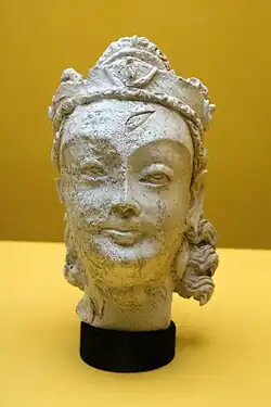 Head of a king or bodhisattva, stucco, Tepe Narenj, 3rd-6th century CE.