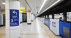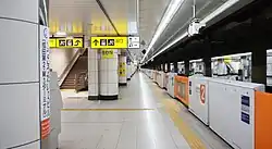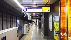 Platform 3, used for Keisei Main Line trains bound for Tokyo, is only long enough to accommodate six cars; therefore two cars of each eight-car Keisei Main Line trainset open onto Track 1, the Tokyo-bound Narita Sky Access Line platform. Keisei has installed special signage in this section of Track 1 to warn passengers not to board these cars.