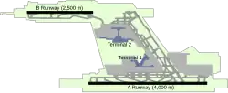 Terminal 2 and the second runway "B"