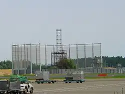 The airport opened under a high level of security; the airfield was surrounded by opaque metal fencing and overlooked by guard towers staffed with riot police. 14,000 security police were at the airport's opening and were met by 6,000 protesters; a Japanese newscaster remarked at the time that "Narita resembles nothing so much as Saigon Airport during the Vietnam War."[17] Protestors attacked police on the opening day with rocks and firebombs while police responded with water cannons; on the other side of Tokyo, a separate group of protestors claimed responsibility for cutting the power supply to an air traffic control facility at Tokorozawa, which shut down most air traffic in the Tokyo area for several hours.[16] The National Diet passed a special statute, the Emergency Measures Act Relating to the Preservation of Security at New Tokyo International Airport, specifically banning the construction and use of buildings for violent and coercive purposes relating to the new airport.[18] Nevertheless, several people have been killed by terrorist acts, including in arson incidents against Totetsu Kogyo and Nippi Corp. employees in 1983 and 1990, respectively, as well as an attack on a Chiba Prefecture official in 1988.