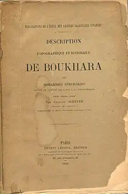 2. ^ a b (1954). "Introduction". The History of Bukhara: Translated from a Persian Abridgment of the Arabic Original by Narshakhī. Translated by Frye, Richard Nelson. Cambridge, Massachusetts: Mediaeval Academy of America. p. xii. Retrieved 10 January 2019.