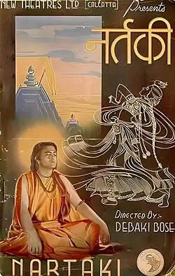 Nartaki (Dancer) is a 1940 film directed by Debaki Bose for New Theatres Ltd, Calcutta.[1] A bilingual made in Hindi and in Bengali, it had story and screenplay written by Bose, with cinematography by Yusuf Mulji. Music was composed by Pankaj Mullick. The cast had actress Leela Desai playing the title role of Nartaki.[2] Najam also called Najam-Ul-Hasain or Najmul Hussain had left Bombay Talkies following his affair and elopement with Devika Rani, had now joined New Theatres Ltd, where he was cast in films like Anath Ashram (1937), Dushman (1939), Kapal Kundala (1939), and Nartaki.[3][4] The rest of the main cast included Jagdish Sethi, Wasti and Pankaj Mullick in the Hindi version.[5]