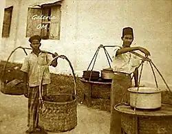 The dish was historically transported via a bamboo/wooden stick on the shoulders - known as mengandar in Malay