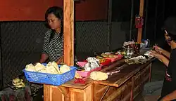 Nasi kucing is often sold at a low price (sometimes as low as Rp 1,000 for nasi kucing[5] and Rp 4,000 for sega macan[4]) at small, road-side food stalls called angkringan, which are frequented by working-class people, or wong cilik, including pedicab and taxi drivers, students, and street musicians.[6] This has led to angkringan being considered the "lowest class of eatery".[5]