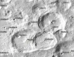 By convention these features are identified on lunar maps by placing the letter on the side of the crater midpoint that is closest to Nasireddin.