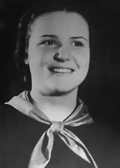 Not awarded the title Hero of the Soviet Union during the war unlike other people who did similar feats, she was eventually posthumously awarded the Medal "For Courage" on 19 February 1996 before receiving the title Hero of the Russian Federation on 12 May 1997. Nevertheless, she was honored and celebrated in numerous ways before receiving the title, with streets, a young pioneer squad, and a minor planet named in her honor.[4][5][6]