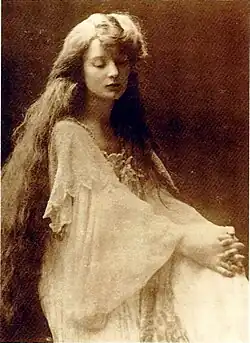 In 1899, after seeing the courtesan Liane de Pougy at a dance hall in Paris, Barney presented herself at de Pougy's residence in a page costume and announced she was a "page of love" sent by Sappho.[20] Although de Pougy was one of the most famous women in France, constantly sought after by wealthy and titled men, Barney's audacity charmed her.[21]