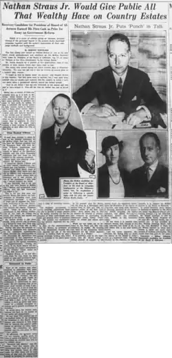 - ^ Douglass, Harvey (23 October 1933). "Nathan Straus Jr. Would Give Public All That Wealthy Have on Country Estates". The Brooklyn Eagle. Brooklyn. Retrieved 2 April 2025.