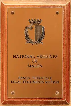 - ^ a b c d "History of the National Archives of Malta". National Archives of Malta. Archived from the original on January 6, 2018. Retrieved January 26, 2011.