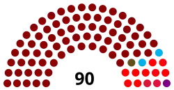 1. ^ 90 of whom are elected by popular vote on a proportional representation basis from party lists: 20 nationally, and 70 representing the country's departments and autonomous regions.
