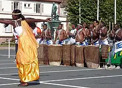 The National Ballet of Rwanda (French: Ballet national du Rwanda), also known as the Urukerereza National Ballet (Ballet national Urukerereza), is a Rwandan dance company. It was created in 1974 at the behest of President Juvenal Habyarimana.[1] Their long-running show features traditional Rwandan songs, drums and dances (not European ballet).[2]
