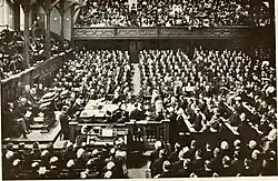 During the early years of the NCC, its inaugural chairman David Z. T. Yui sought to balance pressure from both nationalist and anti-nationalist groups, both inside and outside the Church, although he himself favored a synthesis of nationalism and Christianity.[21] A turning point in this regard was the May Thirtieth Incident in 1925. Yu seized the opportunity to bring nationalist issues to the forefront at the NCC.[22] The NCC sided with the nationalist protesters and sent a letter to the Shanghai Municipal Council as well as a statement to foreign missionaries. The NCC stated that Christianity and patriotism are not mutually exclusive, indeed that social conscience of Christians could no longer be based on total disinterest in politics. The NCC also questioned the role of foreign missions in Chinese Christianity.[22] The viewpoint of NCC angered Western powers, including missionaries.[23] In 1926 the NCC passed numerous resolutions calling for revision of the "unequal treaties" between China and Western powers.[24]