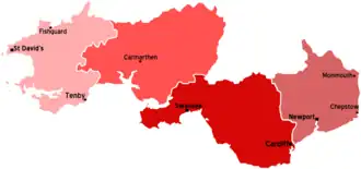 ![]() Map of South Wales with Newport and Cardiff (east) containing NCR 88 | |
