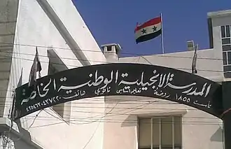 The National Evangelical School is a private school located in Homs, Syria. It was founded in 1855 by American missionaries.[1][2] It is owned now by the Presbyterian Evangelical Church in Homs which is a member of the National Evangelical Synod of Syria and Lebanon.[3]