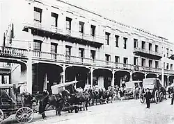 Another citywide fire in 1863 shut down the hotel, which reopened after rehabilitation in April 1864.[7] Brothers John and Bayliss Rector bought the hotel in 1882 and owned it until their deaths in 1914 and 1915, respectively.[2] A new balcony was added to the building sometime before 1894[7] and an annex connected by a second-story glass encased passageway was added c. 1890, then torn down in 1968.[1]