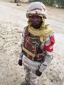 The Nigerien National Guard (French: Garde Nationale du Niger), formerly known as the Forces Nationales d’Intervention et de Securité (1997–2011)[1][2] and Garde Republicaine (1963–1997),[2] is a paramilitary corps of the Armed Forces of Niger under the control of the Ministry of Interior, Public Safety and Decentralization. It is headed by the superior commander of the national guard.
