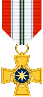 The National Intelligence Cross is a decoration of the United States Intelligence Community (IC) awarded under the National Intelligence Awards (NIA) Program by the Office of the Director of National Intelligence (ODNI). It is the highest award presented by the Office of the Director of National Intelligence.[1] It is equivalent of the Central Intelligence Agency's Distinguished Intelligence Cross.