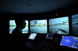 A bridge simulator at the National Maritime College.