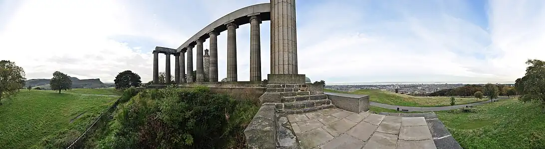 The National Monument of Scotland, on Calton Hill in Edinburgh, is Scotland's national memorial to the Scottish soldiers and sailors who died fighting in the Napoleonic Wars.[1][2] It was intended, according to the inscription, to be "A Memorial of the Past and Incentive to the Future Heroism of the Men of Scotland".[3]