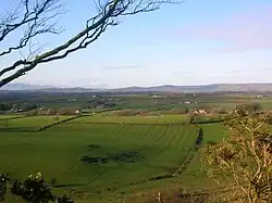 Sandstone slip gate piers are found at the bottom entry point to the Buchans field beside the pedestrian footpath. Such slip gates were built with a series of downward-facing L-shaped grooves on one side and a matching concavity on the other gatepost. Wood bars could then be inserted across and parallel, giving a gate without a hinge. These are sometimes still found in the countryside at large, but they are almost always adapted to carry metal hinged gates. In some areas wood rather than stone was used to construct this type of hinge-less gatepost.
