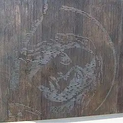 The surface of the touchstone wall is clad in cast bronze panels with a slight textural feel and a dark patina. The surface of the cladding is smooth enough to allow the patina to have a gloss wax finish. The touchstones are also cast bronze but have a golden, almost polished patina, that will change over time with the degree to which each stone is touched. There are 1200 touchstones, which is meant to symbolise the ongoing danger for police on duty.