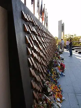 - a bronze commemorative wall with 'touchstone plaques' carrying the name and rank, date of death (day, month and year), and place of death, of police officers who have died whilst on active duty;