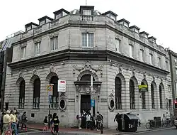 From 1844 on, the Union Bank was located at Princes Street on Bank Junction, across from the Bank of England. On that site the bank erected a prominent new head office building, designed by Philip Charles Hardwick and completed in 1865, remodeled in 1887.[11] That building was in turn replaced by the branch building of National Provincial Bank on the same location, designed by Edwin Cooper and completed in 1932.[12]