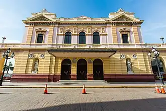 The National Theatre of Panama (Spanish: Teatro Nacional de Panamá) is located in the old city of Panama, next to the church of San Francisco and the Plaza Bolívar. Its construction was ordered by Act 52 of 1904.[2]